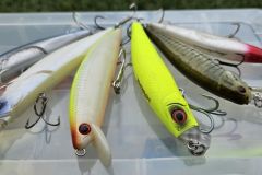 3 esche per la pesca alla trota in un fiume a flusso veloce
