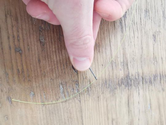 Fate passare il filo attraverso l'occhiello dell'amo, dell'esca o dello streamer.