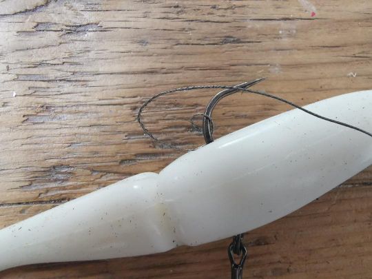 Tirare delicatamente la treccia in modo che la girella penetri nell'esca.