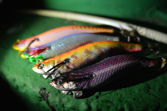 Le esche sono chiamate calamari, egi, calamaretti o jigs.