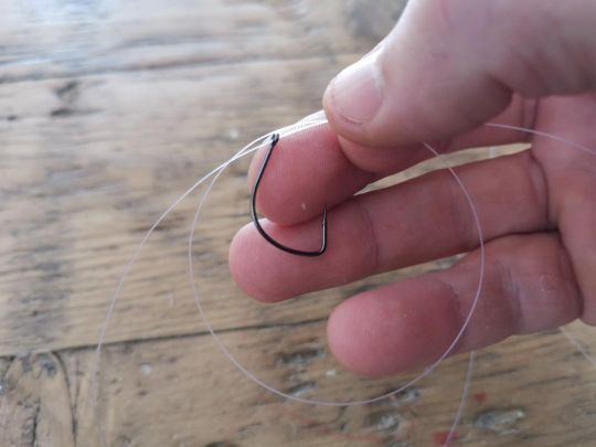 Fare un'asola a monte dell'amo (lenza sul lato del mulinello).