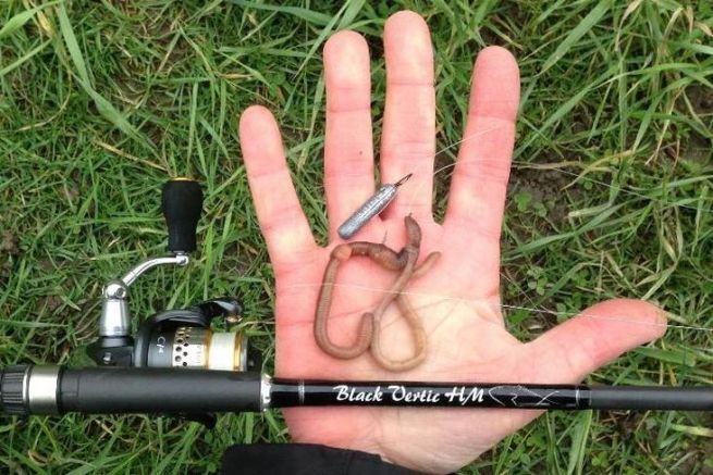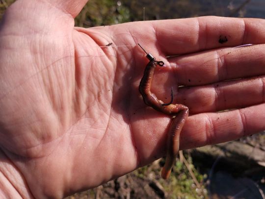 Fate passare la lenza attraverso l'occhiello dell'amo, assicurandovi che la punta sia rivolta verso l'alto (il verme verso il mulinello).