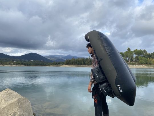 È anche più facile entrare in acqua in due, passare l'attrezzatura da pesca, le pinne, ecc... In caso di problemi (foratura, caduta, stress, ecc.) è anche molto più rassicurante avere con sé una persona fidata.