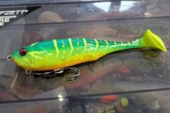 Per quanto riguarda il rigging, un triplo è collocato in posizione centrale sulla pancia. Questo è tenuto a contatto con il corpo dell'esca da un "quickclip", che rilascia l'amo al momento dell'innesco e prolunga la vita dell'esca morbida. L'amo è fissato a un'ancoretta in acciaio, dotata di una girella per dare all'amo una libertà di movimento a 360 gradi ed evitare lo sganciamento dei pesci.