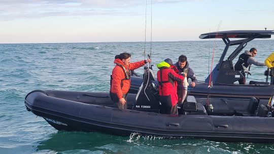 Avevamo deciso gli spot da esplorare in ordine sparso e al primo drift (abbastanza lungo) Manu ha tirato fuori un pesce di 78 cm! Il pesce più grande di questo primo turno. Eravamo nella zona di Antioche e Manu ha usato il Kerry Shad di Kerfil per attirare questo magnifico pesce. La gara è iniziata molto bene per noi ed eravamo fiduciosi. Tuttavia, il resto della mattinata è stato più complicato... Un lungo deserto con poche spigole non ferrate e qualche bella spigola vecchia, abbastanza per divertirsi lo stesso! Alla fine della mattinata, abbiamo finalmente catturato il nostro secondo pesce di rete, una spigola di 44 cm catturata sopra il kelp in 4 metri d'acqua.