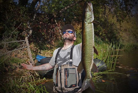 La risposta alla mia domanda principale, se i muskellunge vivono nella zona, non si è fatta attendere. Infatti, passando vicino a un banco di erbacce, un muskellunge ha iniziato a seguire l'esca e uno stop and go è stato sufficiente per farlo attaccare.