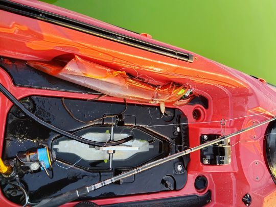 Stesso set-up, ma dato che l'acqua è più chiara, ho cambiato il colore dei jig in arancione. Anche i calamari erano presenti. Non grandi come il primo giorno, ma numerose, una ventina in meno di tre ore di pesca, con qualche doppietta. E tre seppie che non sono entrate nel kayak. Ho rifatto la mia decorazione e ho inserito nel kayak una decorazione in finto legno. La mostro nel video allegato. Sono riuscito a non macchiarmi di inchiostro durante questa sessione, il che è un'impresa...