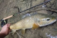 Ho preparato due piccole mosche nere per fare un tentativo e cercare di essere più fine e discreto. Dopo qualche lancio, una trota si impossessa della mia mosca a meno di 3 metri da me e, al momento dell'aggancio, il filo cede e la trota se ne va con la mia mosca di punta! Ne prendo una in bobina e poi non succede più nulla!
