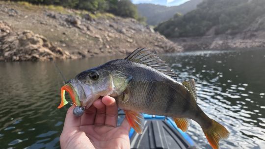 La pesca del pesce persico in kayak si effettua con piccoli pesci che nuotano, spinners o micro-jigs catturati con la lenza.