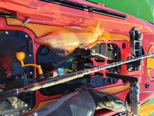 - L'EGI EBI Q TR-TIPRUN: un jig abbastanza pesante, 28g, anch'esso progettato per il lancio da riva e che ha funzionato molto bene con le grandi seppie.