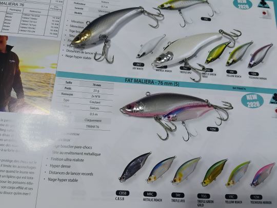 Anche nuove serie, in particolare dalla creazione Trefle distribuita da Flashmer. La Maliera da 58 mm e la Fat Maliera da 76 mm sono minnows lipless silenziosi per lanci lunghi.