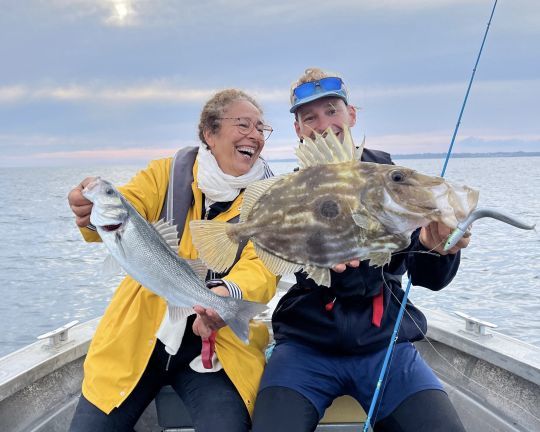 Ora vivo nel Finistère e offro gite in barca nella zona della baia di Audierne. All'inizio della stagione, da aprile a giugno, trascorro le mie giornate pescando diverse specie. L'ambiente è molto ricco e c'è un'enorme varietà di pesci: St Pierre, spigole, merluzzi, sugarelli...