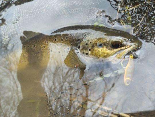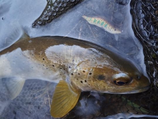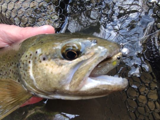 Le cose sono tutt'altro che rosee, tuttavia, per i nostri fiumi francesi di prima classe. I poveretti soffrono di ogni sorta di malanni. Con l'inquinamento di ogni tipo, le alluvioni devastanti, l'aumento delle temperature, la predazione e la grave siccità, non è un buon momento per essere un salmonide. Cerco di non esagerare, cercando di traumatizzarli il meno possibile: da diverse stagioni pesco solo con ami singoli e la foto ricordo viene scattata molto rapidamente al pesce nella rete di sbarco.
