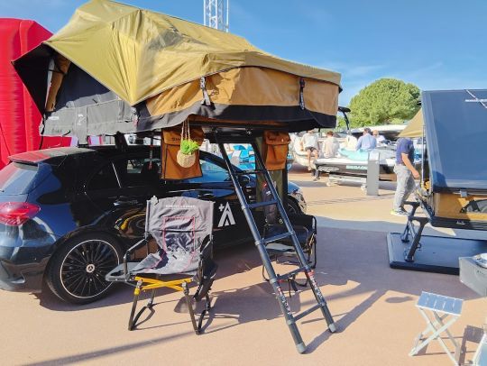 Oltre ai galleggianti, mi ha colpito anche il marchio svizzero Swisskings, che offre tende da tetto che trasformano qualsiasi veicolo in un mezzo pronto per l'avventura, con il massimo comfort. Offre anche un'intera gamma di accessori pieghevoli, come sedili e tavoli. Tutto questo fa parte dello spirito di indipendenza, del free-roaming e dell'escursionismo.